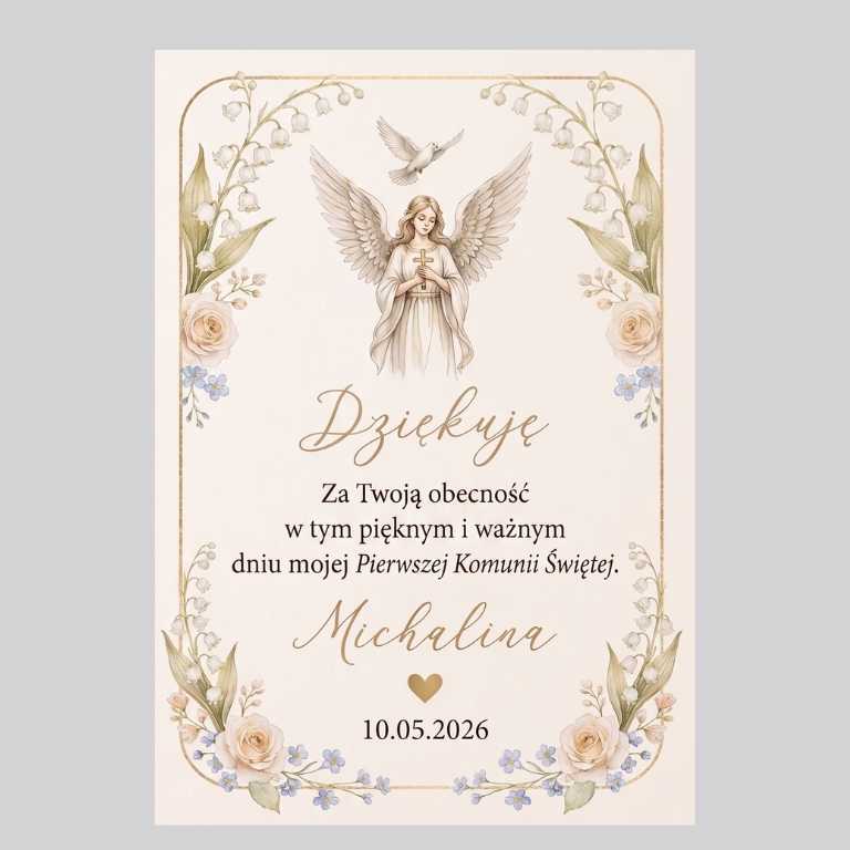 Wyjątkowy brelok aniołek to subtelne i pełne wdzięczności podziękowanie dla gości z okazji Chrztu lub Pierwszej Komunii Świętej. Ten uroczy upominek symbolizuje opiekę Anioła Stróża i stanowi trwałą pamiątkę tego wyjątkowego dnia. Dzięki eleganckiemu wykonaniu będzie pięknym, a zarazem praktycznym dodatkiem dla każdego z bliskich.