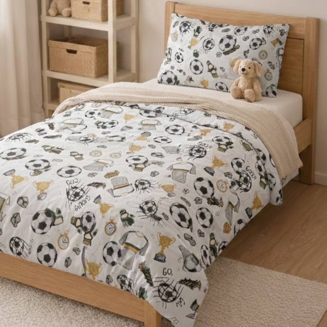 Pościel została uszyta w 100% z bawełny. Dzięki temu jest przyjemnie miękka, oddychająca oraz wyjątkowo trwała. Co ważne – tkanina zapewnia odpowiednią cyrkulację powietrza przez cały rok, co przekłada się na spokojny i komfortowy sen zarówno latem, jak i zimą.