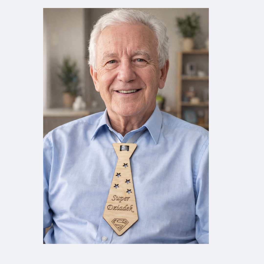 Podaruj swojemu dziadkowi coś naprawdę oryginalnego! Nasz krawat wykonany ze sklejki łączy w sobie elegancję i pomysłowość, tworząc wyjątkowy dodatek, który zachwyca niebanalnym stylem. Lekki, trwały i pełen naturalnego uroku – idealny jako prezent, który pozostanie w pamięci.