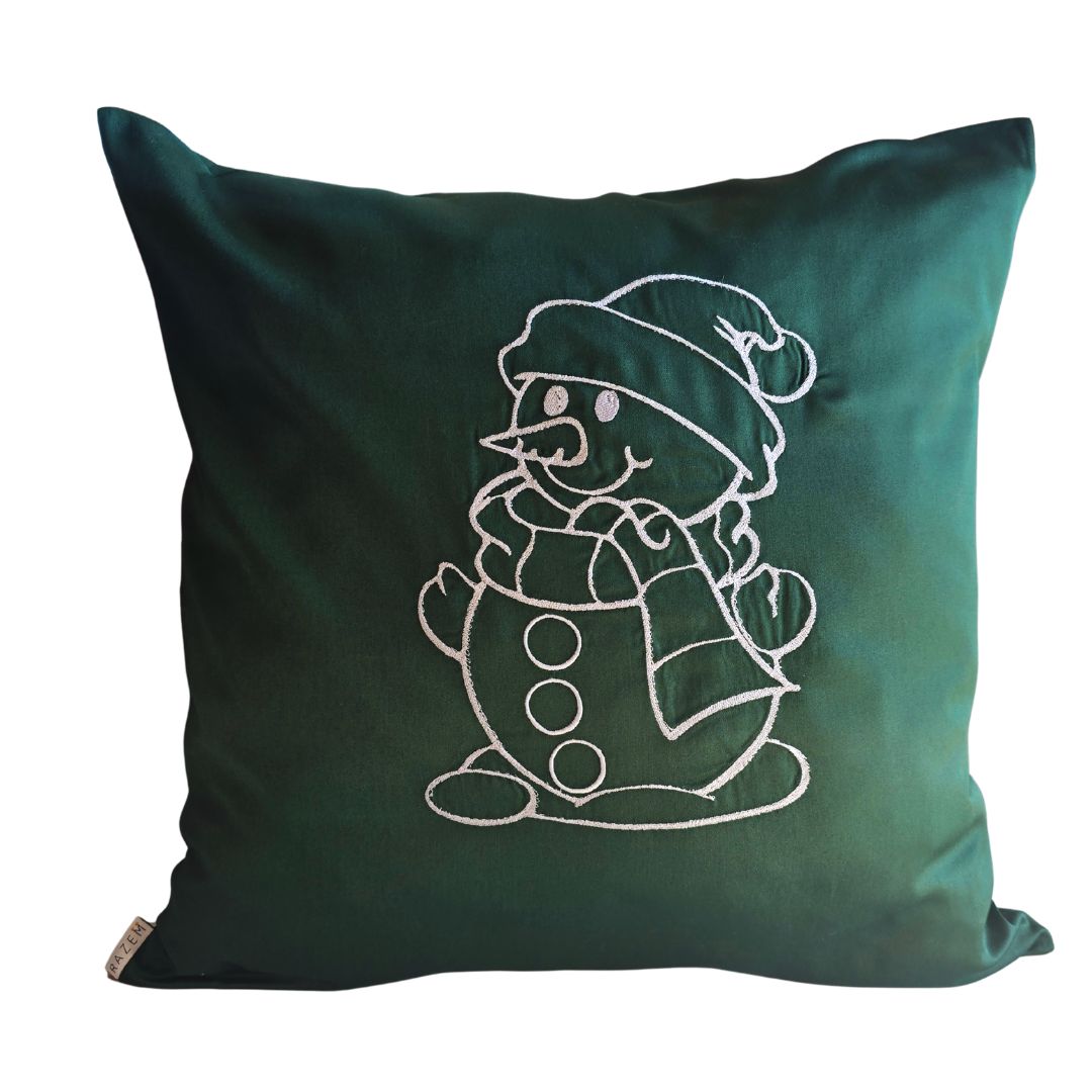 Dodaj świątecznego uroku swojej przestrzeni dzięki eleganckiej poszewce w intensywnej butelkowej zieleni. Na środku poszewki wyhaftowany jest bałwan , który wprowadza przytulny, świąteczny klimat i sprawia, że wnętrze staje się bardziej nastrojowe.