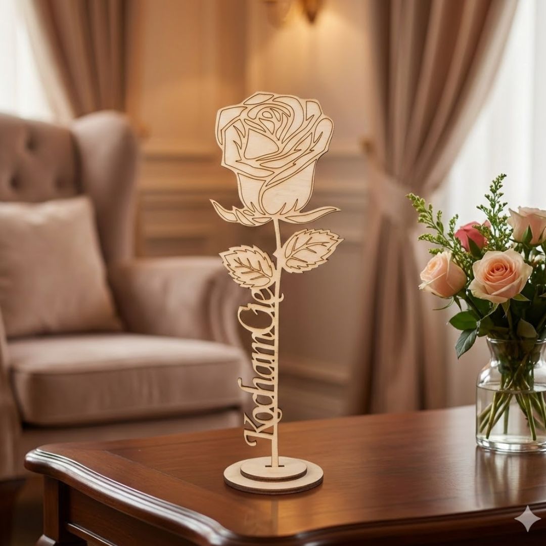 Elegancka róża wykonana z naturalnej sklejki. Idealny prezent, który zachowa swoje piękno na lata.