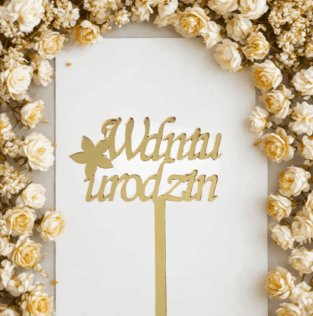 Uwaga: Topper nie jest personalizowany – zamawiasz dokładnie taki wzór, jak na zdjęciu. Jeśli interesuje Cię topper z imieniem dziecka lub datą – sprawdź naszą ofertę topperów personalizowanych.
